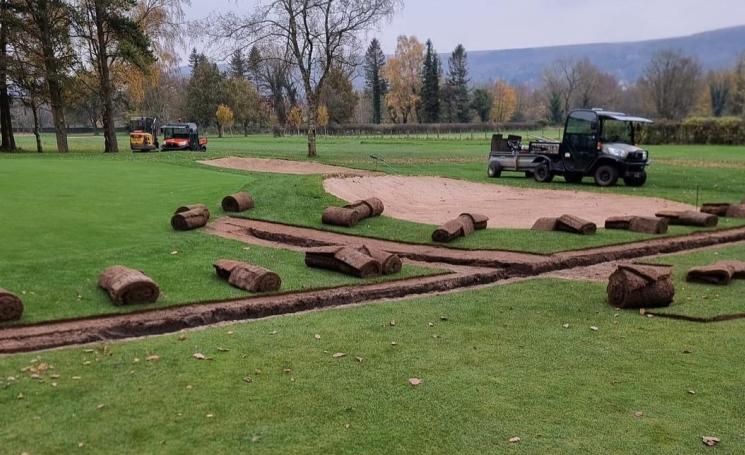 In a very skilful operation, the team neatly ran channels across the fairway and around the green and then installed the new drainage. They carefully placed the turf back into place returning the fairway to as it was before. Within a matter of days it was hard to see where they had been. Well done team, excellent work all round.